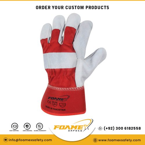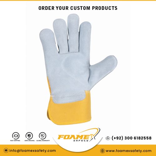 Made of Natural Cow Split Leather Rubberized Cuff Size: 10.5″